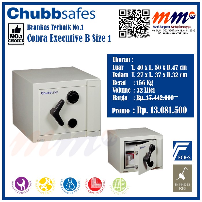 Sebagai pengembangan dari cobra elite, cobraexecutive adalah produk baru yang menawarkan perlindungan yang handal terhadap pencurian dan kebakaran dalam suatu perpaduan. Sebagai pengembangan dari cobra elite, cobra executive adalah produk baru yang menawarkan perlindungan yang handal terhadap pencurian dan kebakaran dalam suatu perpaduan yang sangat. Brankas buatan chubb dengan kode cobra ini memiliki lima macam ukuran. Cobra executive a hanya menggunakan kunci. Ukuran ii dengan dimensi 47x37x32cm dengan bobot 225kg terbilang yang paling ideal untuk digunakan.
