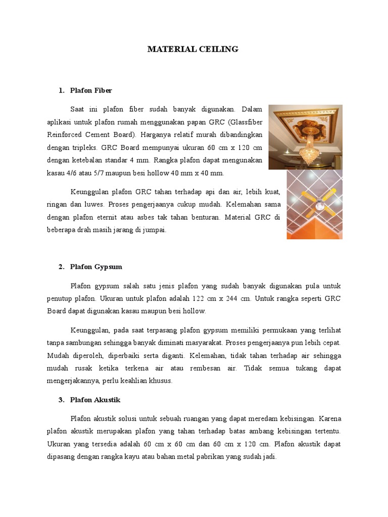 Saat ini penggunaan asbes pada plafon tidak terlalu dianjurkan.